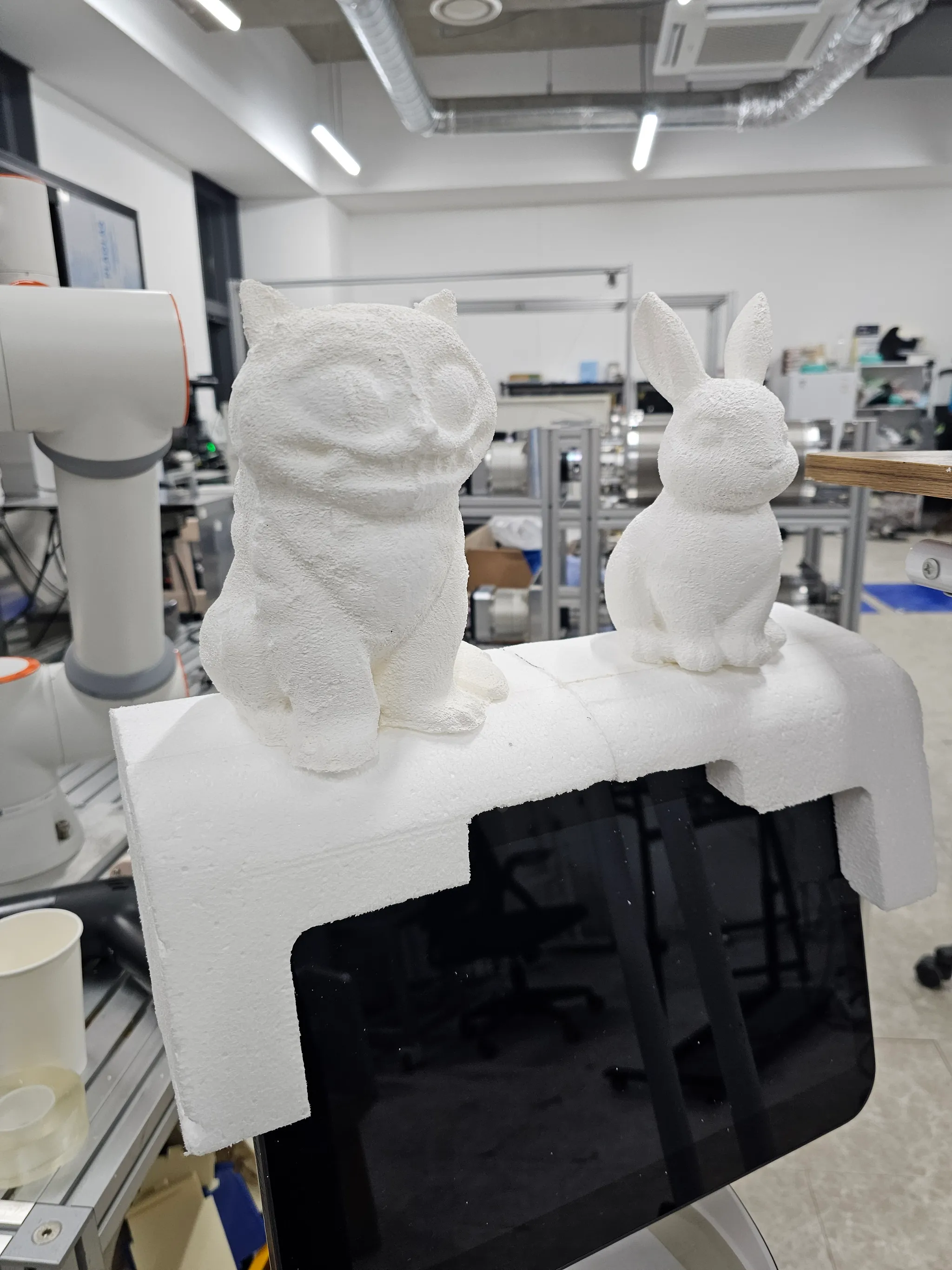 사람 조각가는 자신보다 큰 것도 조각한다. 조각물에 대한 외부에서의 접근이 자유로운 폼팩터 필요. 로봇암.